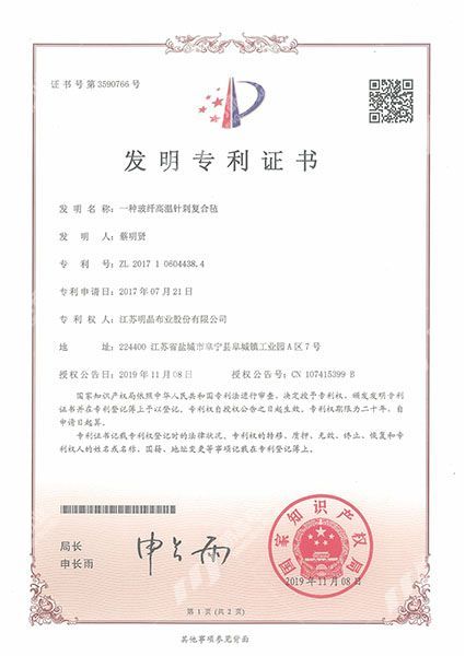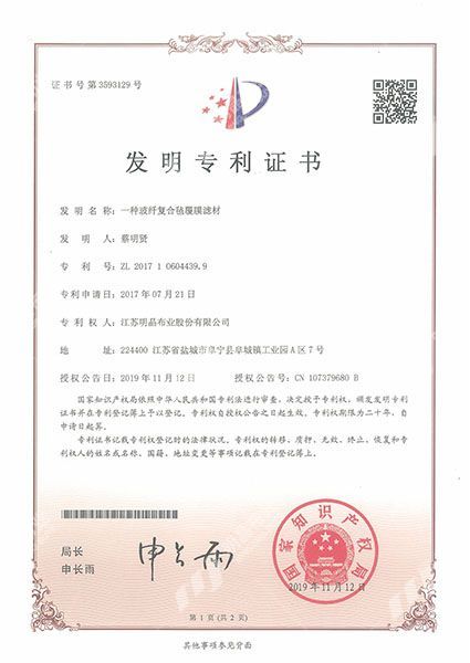 江蘇明晶布業股份有限公司創建于八十年代,公司現址為江蘇省阜寧縣阜城工業園區,主要從事除塵布、工業濾布、土工布等工業濾料的研發和生產,是國家大型濾料廠家之一。